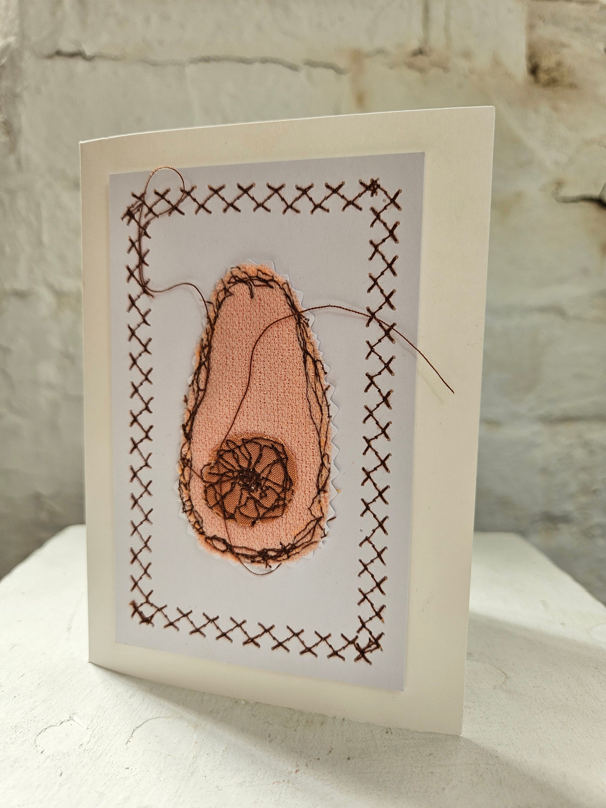 This bOOb is a handcrafted card designed for all occasions. It is elegantly decorated using a sewing machine.